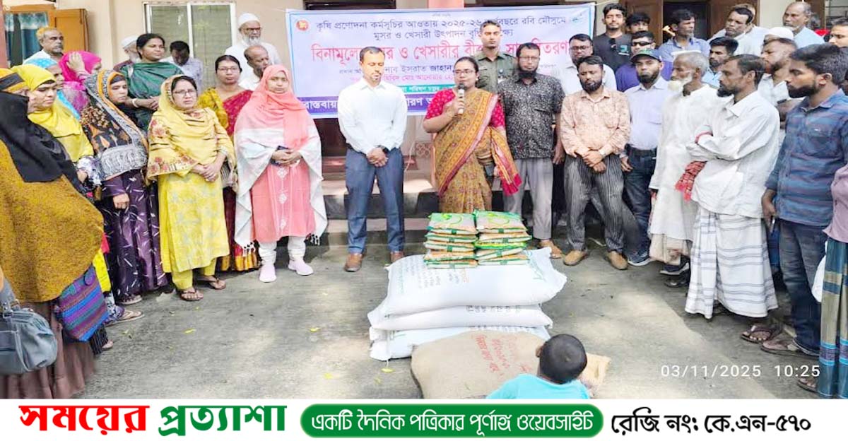চরভদ্রাসনে কৃষকদের মাঝে বিনামূল্যে সরিষা বীজ ও সার বিতরণ