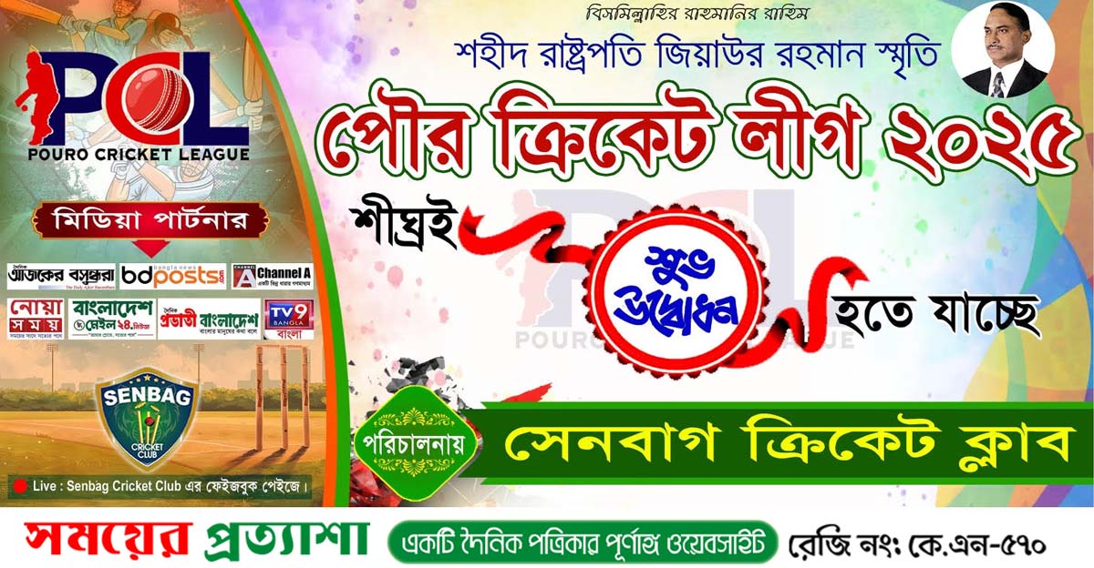 সেনবাগ উপজেলার সেরা খেলোয়াড়দের নিয়ে শীঘ্রই জমজমাট আয়োজনে উদ্বোধন হতে যাচ্ছে শহীদ রাষ্ট্রপতি জিয়াউর রহমান স্মৃতি “পৌর ক্রিকেট লীগ ২০২৫” ( PCL) । পুরো আয়োজনটির পেছনে রয়েছে সেনবাগ ক্রিকেট ক্লাব।