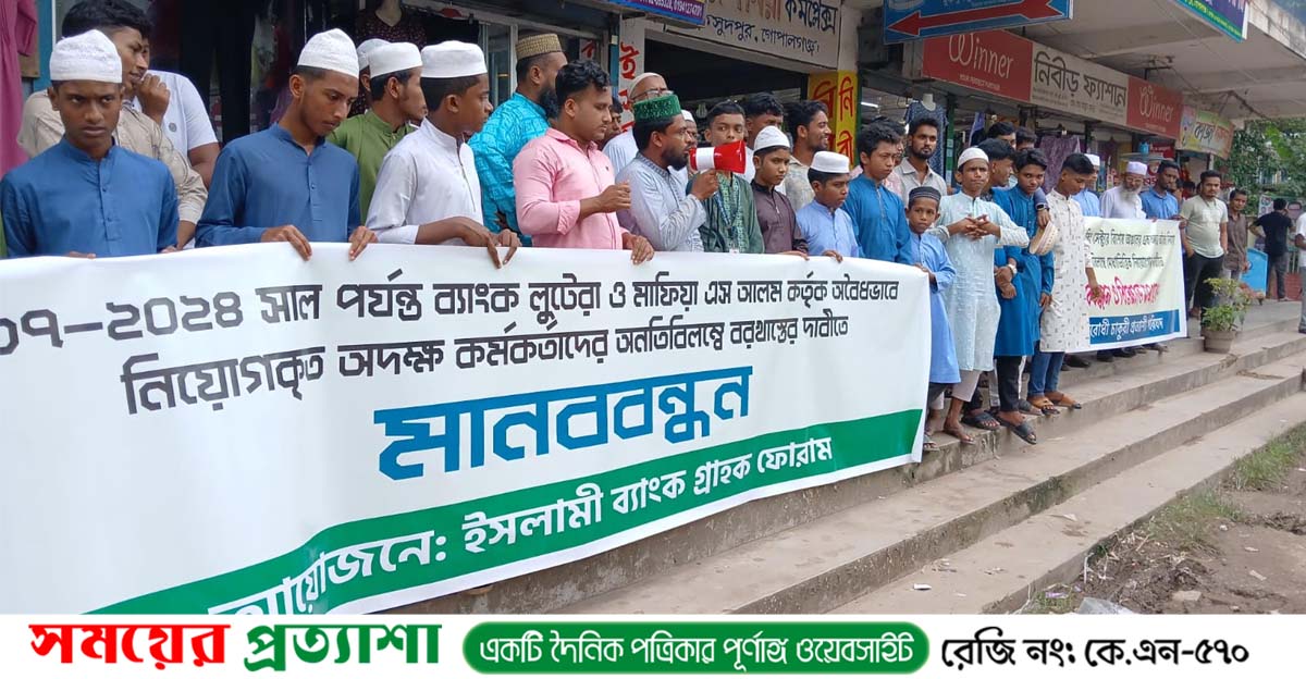 গোপালগঞ্জের মুকসুদপুরে ইসলামী ব্যাংকে এস আলম কর্তৃক অবৈধ নিয়োগ বাতিলসহ ৪ দফা দাবীতে মানববন্ধন ও বিক্ষোভ সমাবেশ অনুষ্ঠিত হয়েছে।