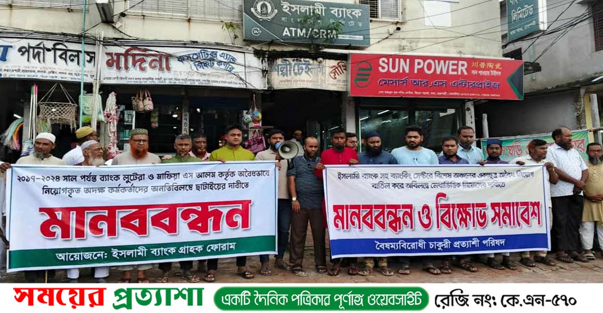 “চাকরিচ্যুত বৈধ কর্মকর্তা-কর্মচারীদের পুনর্বহাল, ব্যাংকের নীতিমালা অনুযায়ী যোগ্য প্রার্থীদের নিয়োগ ও এস আলম কর্তৃক ইসলামী ব্যাংকে কথিত অবৈধ নিয়োগ বাতিলের দাবিতে ইসলামী ব্যাংক বাঘা শাখার বিনিয়োগ গ্রাহক ও একাউন্ট হোল্ডারসহ স্থানীয় ব্যবসায়ীরা মানববন্ধন কর্মসূচি পালনের মাধ্যমে তারা এসব দাবি করেছেন।