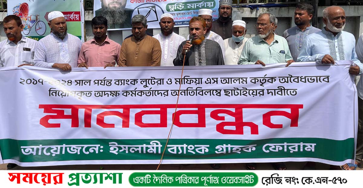 বক্তারা আরও বলেন, ইসলামী ব্যাংকের ভাবমূর্তি ধ্বংসের পেছনে এস আলম গ্রুপের অস্বচ্ছ ভূমিকা রয়েছে। ব্যাংক থেকে পাচারকৃত অর্থ ফেরত এনে সংশ্লিষ্টদের বিরুদ্ধে আইনানুগ ব্যবস্থা গ্রহণ ও ব্যাংক ডাকাত এস আলমসহ তার সহযোগীদের গ্রেফতার করে দৃষ্টান্তমূলক শাস্তির আওতায় আনতে সরকারের প্রতি আহ্বান জানান তারা।