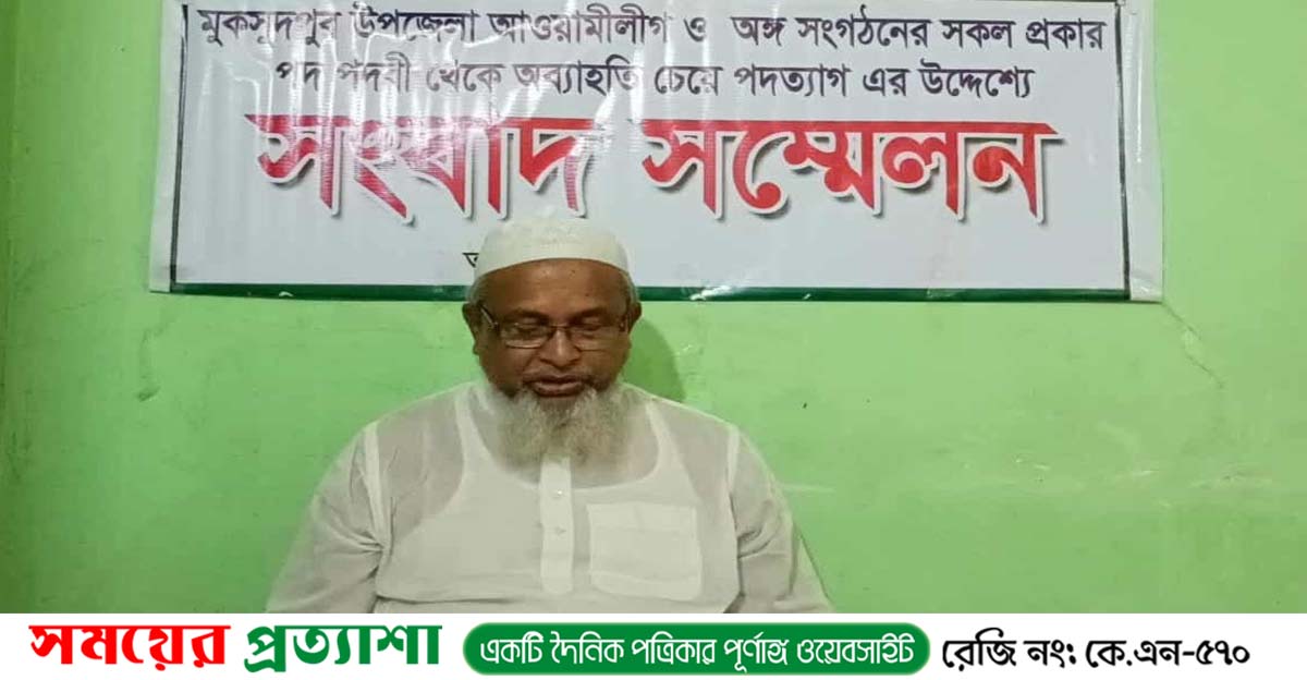 গোপালগঞ্জের মুকসুদপুরে সংবাদ সম্মেলন করে, পদত্যাগ করেছেন আওয়ামী লীগ নেতা মোহাম্মাদ আলী শেখ।