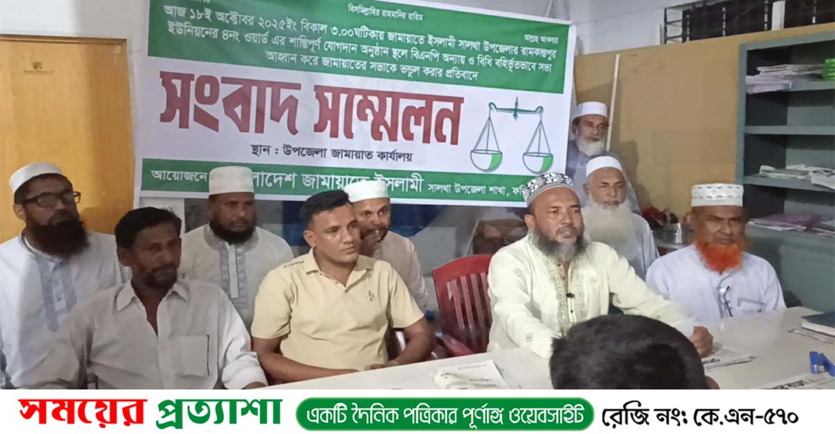 শনিবার (১৮ অক্টোবর) বিকাল সাড়ে ৫ টার দিকে ফরিদপুরের সালথা উপজেলা জামায়াতে ইসলামীর নিজস্ব কার্যালয়ে এক সংবাদ সম্মেলনের আয়োজন করা হয়। সেখানে সালথা উপজেলা জামায়াতের আমীর অধ্যাপক আবুল ফজল মুরাদ বিএনপি নেতাকর্মীদের বিরুদ্ধে এ অভিযোগ করেন।