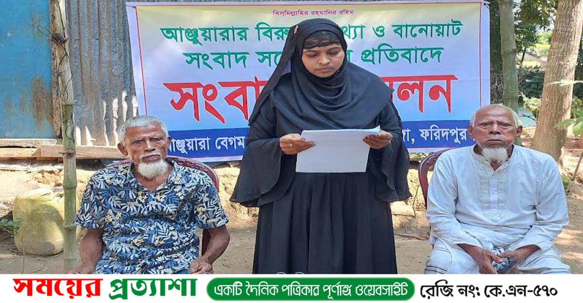 বৃহস্পতিবার (২৩ অক্টোবর) দুপুর ১ টায় আলফাডাঙ্গা পৌরসভার ৯ নং ওয়ার্ডের মিঠাপুর চরপাড়া গ্রামে ছোট চাচা বাকিয়ার রহমানের বাড়িতে সংবাদ সম্মেলন করেন আঞ্জুয়ারা বেগম।