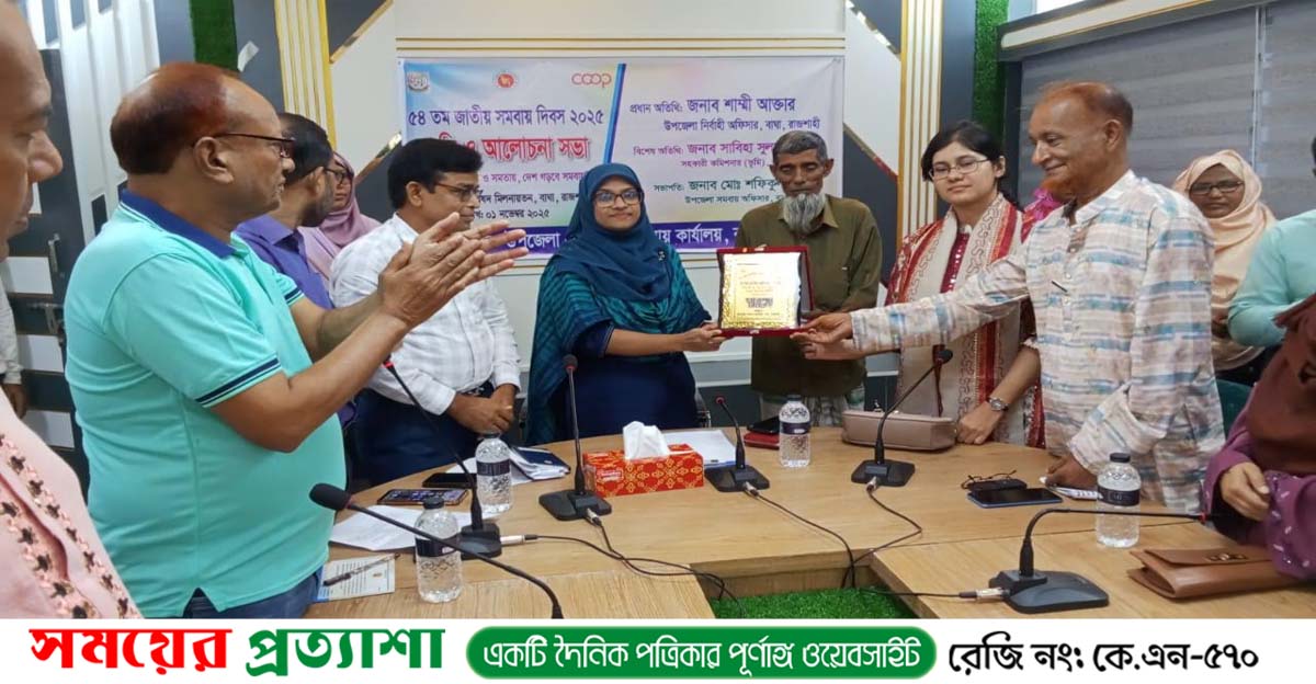 রাজশাহীর বাঘায় ৫৪তম জাতীয় সমবায় দিবস উদযাপন উপলক্ষে র্যালি,জাতীয় ও সমবায় পতাকা উত্তোলন এবং আলোচনা সভা অনুষ্ঠিত হয়েছে। শনিবার (০১-১১-২০২৫) ‘‘ সাম্য ও সমতায়, দেশ গড়বে সমবায় ’’ এ প্রতিপাদ্য সামনে নিয়ে উপজেলা প্রশাসন ও সমবায় কার্যালয় এর আয়োজন করে। সভায়, উন্নত দেশের আদলে সমবায় সমিতির কার্যক্রম অর্থনৈতিক মুক্তি ও দারিদ্র বিমোচনের লক্ষে সুবিধাভোগীদের সমভাবে নিয়ন্ত্রণ ও নিজেদের ভাগ্যেউন্নয়নে কাজ করার বিষয়ে আলোচনা করা হয়।