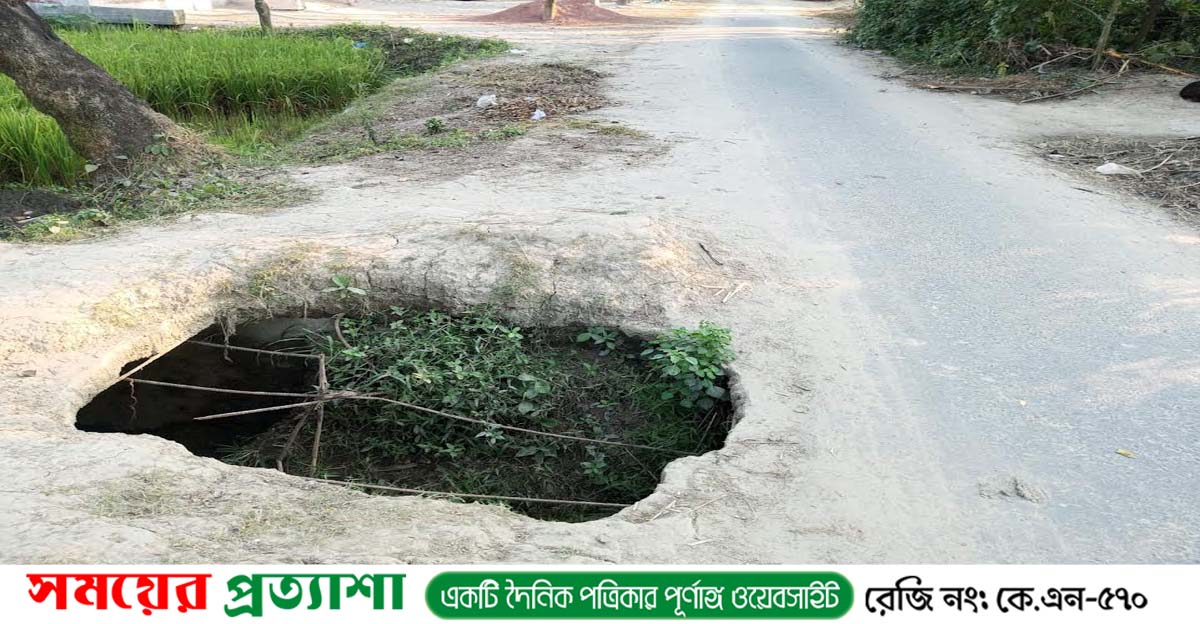 তখন মাটি খেকোরা ভাঙা অংশ মাটি দিয়ে ভরাট করে মাটি পরিবহন করে। পরবর্তীতে বর্ষায় জলাবদ্ধতা দেখা দিলে গ্রামবাসী সেই মাটি সরিয়ে দেয়। এরপর থেকেই কালভার্টের অর্ধেক অংশ ভেঙে বড় একটি গর্তের সৃষ্টি হয়েছে, যা এখন প্রাণহানির ঝুঁকি তৈরি করেছে।