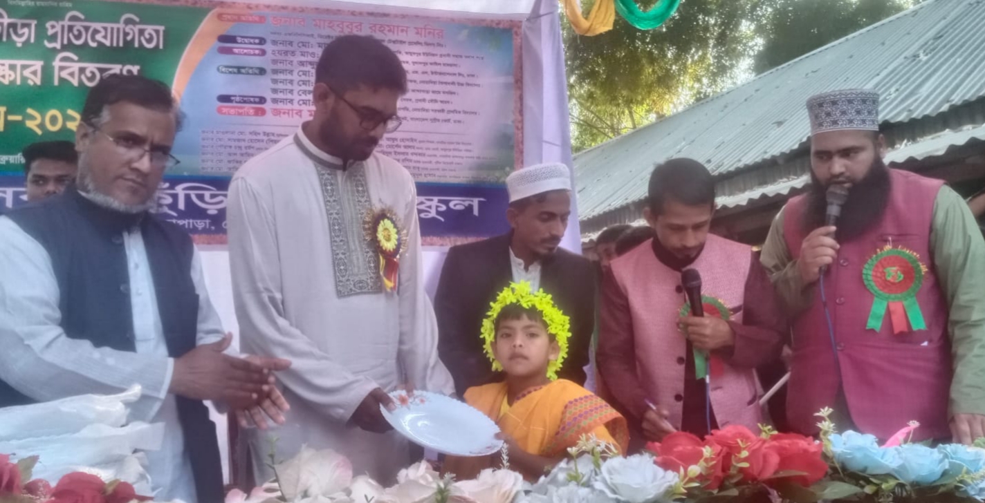 অনুষ্ঠানে দৌড় প্রতিযোগিতায় প্রথম হয়ে অতিথিদের হাতে পুরস্কার গ্রহণ করেন, এই স্কুলের ছাত্রী, সাংবাদিক মোঃ আলম মৃধার মেয়ে আতিয়া আক্তার অনামিকা।