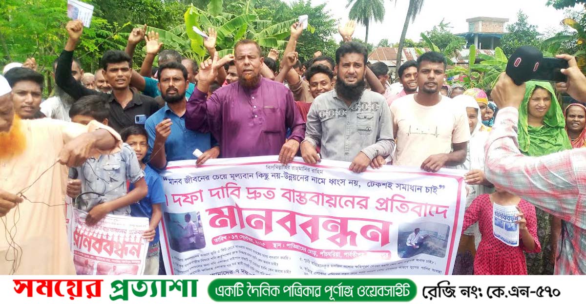 বড়পুকুরিয়া কয়লাখনি এলাকার ক্ষতিগ্রস্থ মানুষদের ৭ দফা দাবি আদায় ও দ্রুত বাস্তবায়নের দাবিতে মানবন্ধন