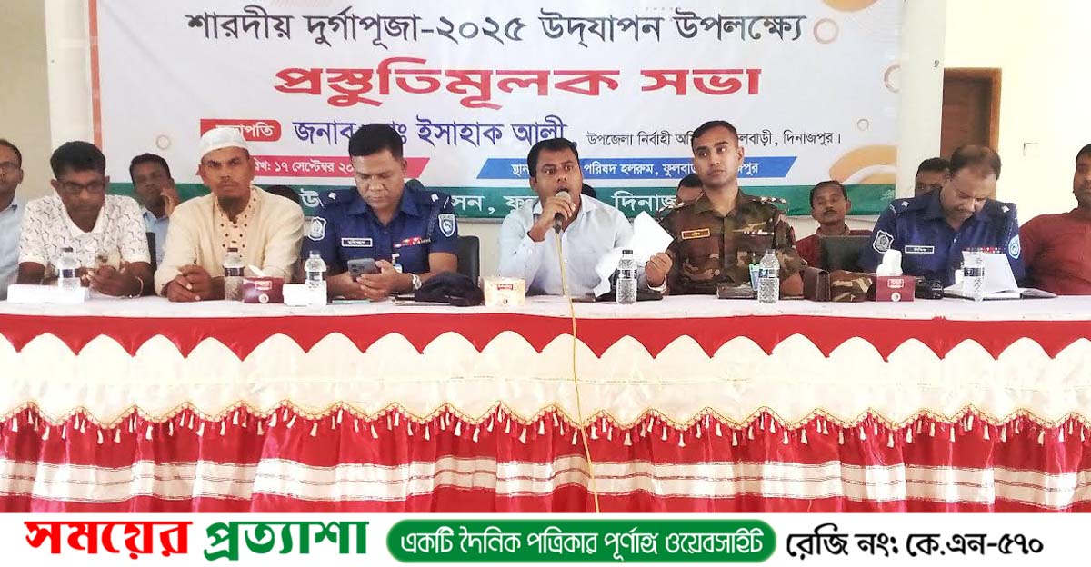 ফুলবাড়ীতে শারদীয় দুর্গাপূজা উদযাপন উপলক্ষ্যে প্রস্তুতিমূলক সভা অনুষ্ঠিত