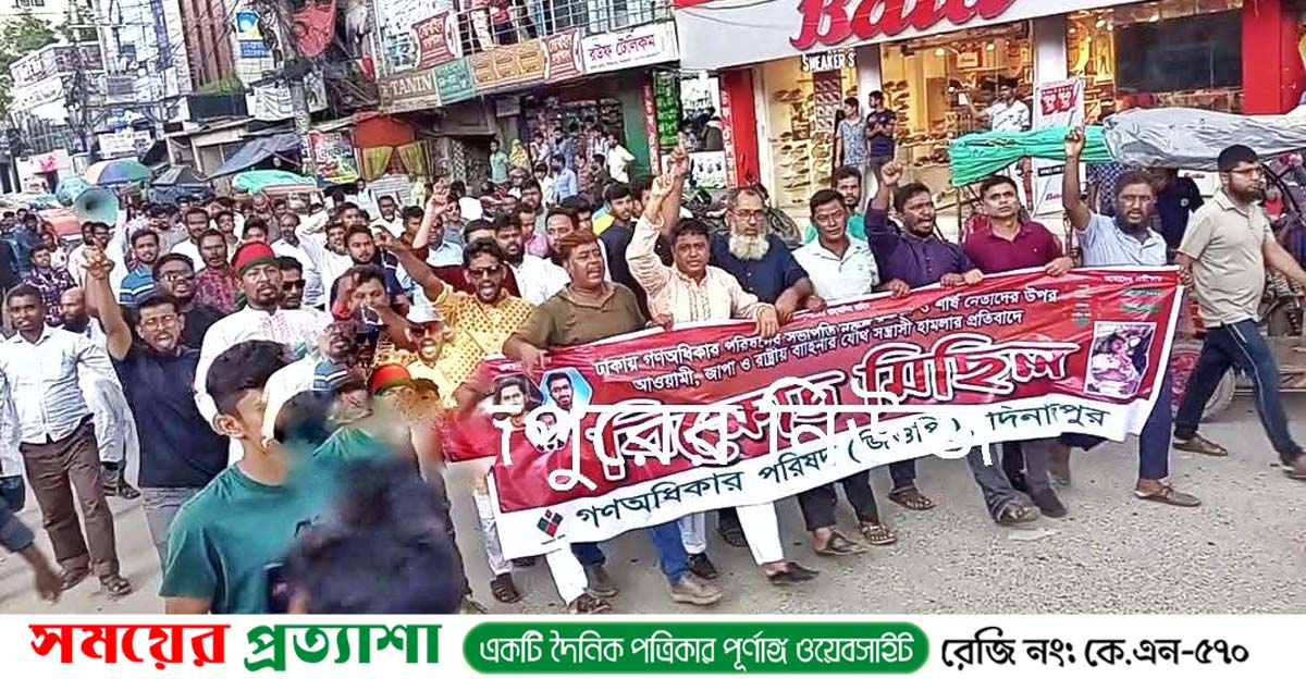 আসাদুর রহমান হাবিবঃ ঢাকায় গণ অধিকার পরিষদের সভাপতি নুরুল হক নুরের উপর হামলার প্রতিবাদে দিনাজপুরে বিক্ষোভ মিছিল করেছে গণ