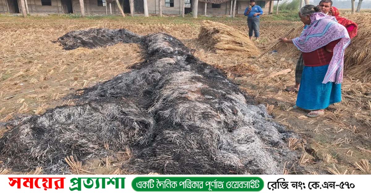 বাগাতিপাড়ায় দুর্বৃত্তদের আগুনে কৃষকের ধানের পালা পুড়ে ছাই, কৃষকের মাথায় হাত